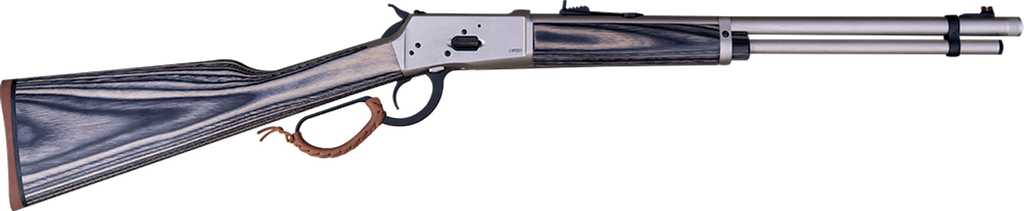 The Canuck Wrangler Jurassic rifle combines classic lever-action functionality with bold modern aesthetics. Featuring a grey laminate stock and a brushed stainless steel receiver, it offers a durable platform with eye-catching appeal. The 18.5" barrel is threaded (5/8x24) to accept muzzle accessories, while the fiber optic front and adjustable rear sights provide enhanced visibility and precision. With a 9+1 capacity and a smooth lever action, this rifle is an excellent option for shooters seeking power, accuracy, and style in one versatile package.